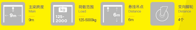 • RST可移動(dòng)式門吊起重量125kg至5000kg;跨度達(dá)9m;梁下高度可達(dá)6m;并具有4個(gè)可變向定位腳輪、移動(dòng)輕松。